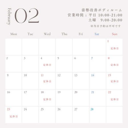 〜2月の営業カレンダー〜