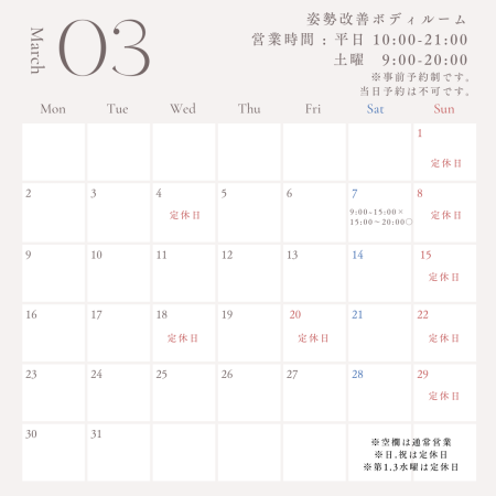 〜3月の営業カレンダー〜